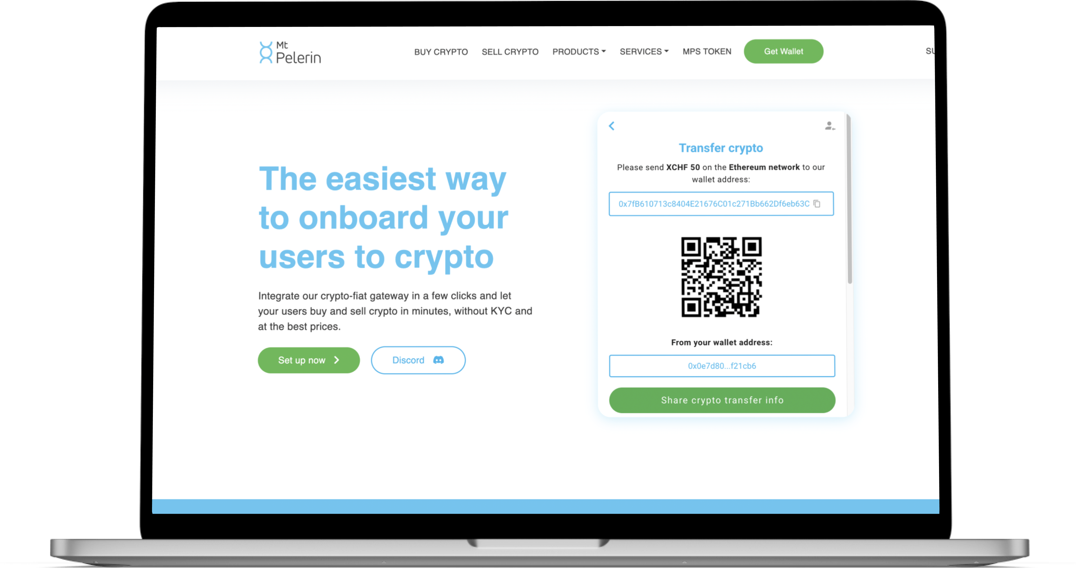 - Click on “WalletConnect” in the widget on the website of Mt. Pelerin to show the QR-Code.